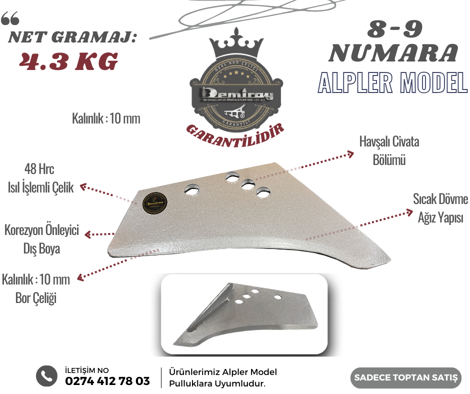 Alpler Model Dövme Çelik 8-9 Numara Pulluk Bıçağı